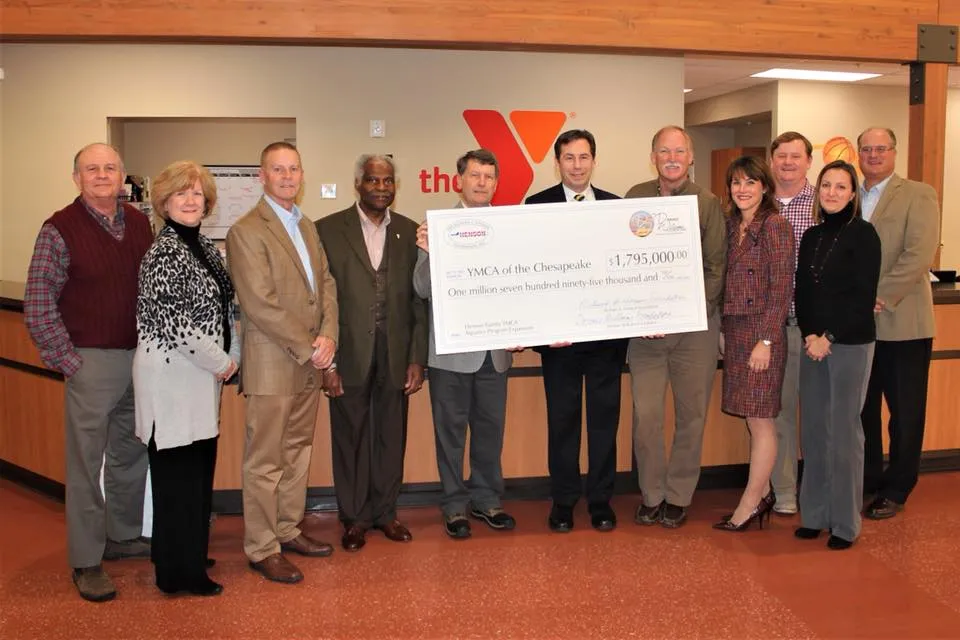 Representatives of the Richard A. Henson Foundation and Donnie Williams Foundation present a check to the YMCA of the Chesapeake toward the construction of a new Aquatic Center at the Henson Family YMCA in Salisbury, MD. The new Aquatics enter will include a new warm water pool, replace the outdoor pool and build a pavilion.