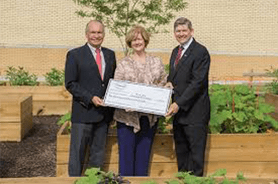 Henson Foundation presents a check for $10,000 for the college’s Food for Students initiative, which includes a food pantry and community garden that began in the fall of 2017. The food pantry has distributed more than 6,000 pounds of food to the campus community, serving more than 1,000 people.